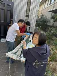 土曜日の朝早くから、ジャミ玄関ポーチで作業に取り掛かっていました。