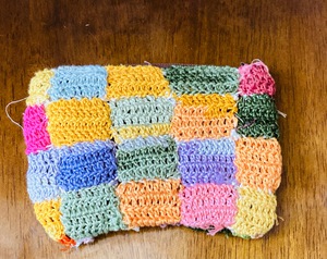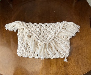 マクラメ編みのポーチとニットのポーチ