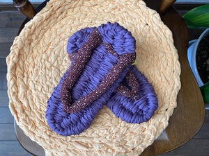 先日、入荷しました中古の着物で布ぞうりの製作が進んでいます。