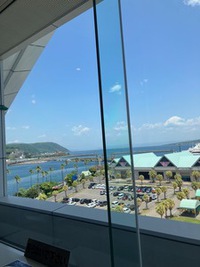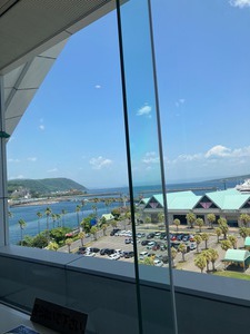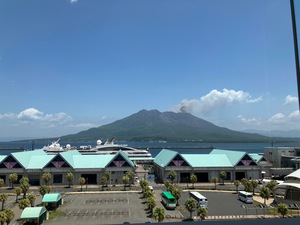 桜島の見える展望ホールで休憩をしました。北埠頭にはフランス船籍のル ソレ