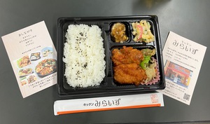 まずは集会室で「キッチンみらいず」さんのお弁当を頂きました。