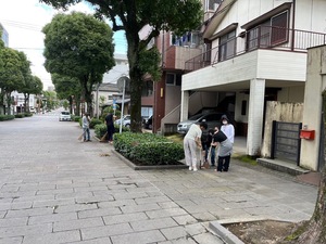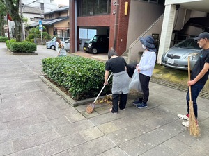 ジャミでは朝礼後、南州神社の参道清掃をおこなっています。