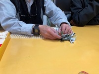 第一段階が終わると、編み込み担当者にパーツを渡し、編み込んでもらいます。