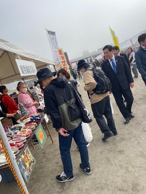 さつま町ではたくさんの出店があり、塩田県知事も視察に