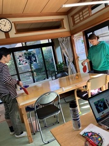 お昼休みには、テーブルを動かし臨時の卓球台