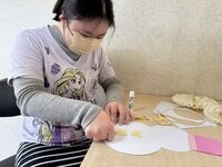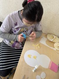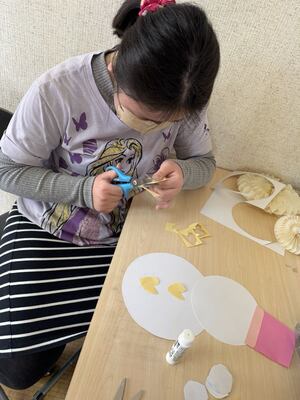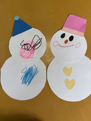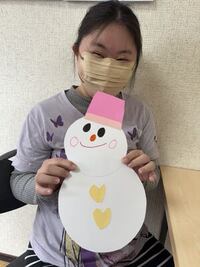 雪だるまの台紙に、いろいろ飾り付けをしていきました。