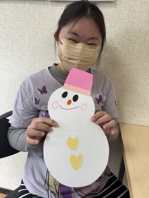 1月の壁面制作は<雪だるま>です。鹿児島ではまだこの冬の