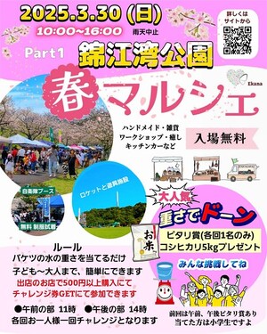 今度の日曜日、3月30日、錦江湾公園にて<春マルシェ>が