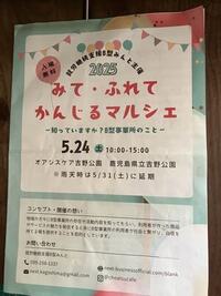 本日は吉野公園で開催される「みて・ふれて・かんじるマルシェ」に